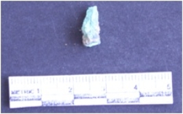 | Description / विवरण | It is a broken corroded copper rod, circular in section. Greenish in color. |