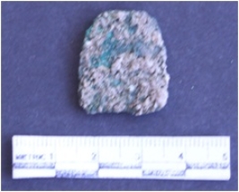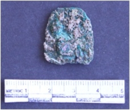 | Description / विवरण | It is a corroded copper object, squarish in shape with rounded edges. Greenish in color. |