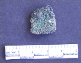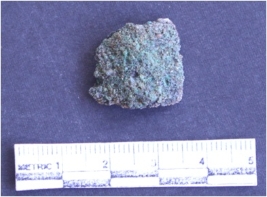 | Description / विवरण | It is a corroded copper object, greenish brown in color. Squarish in shape with raided edges. |