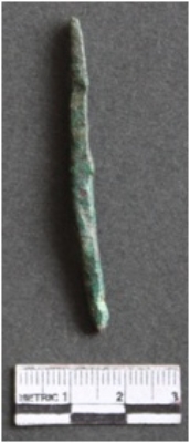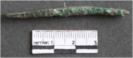 | Description / विवरण | It is a corroded copper rod. Elongated and tubular in shape. Greenish brown in color. Pointed at both the ends. |