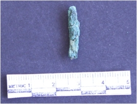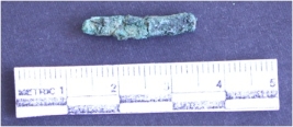 | Description / विवरण | It is a corroded copper fragment. It is greenish brown in color. Circular in section. Probably it could have been used as a small rod. |