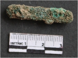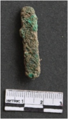 | Description / विवरण | It is a corroded copper rod. Elongated and tubular in shape. Greenish brown in color. The edges are rounded from both the ends. |