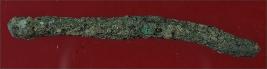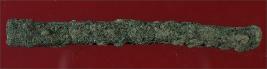 | Description / विवरण | It s a piece of copper. Surface is rough and little curved, deposition of hard patina. Both ends are broken. |