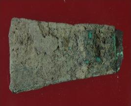 | Description / विवरण | Trench YQ 1, layer 3, depth 18-24 cms It s a copper piece in rectangular shape but one side is broader than other. Surface is rough with deposition of hard patina. |