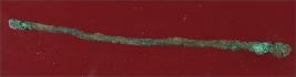 | Description / विवरण | Trench ZB 3-4 mid baulk, layer 3 It s a small piece of copper. Shape is slender, surface is rough and deposition of hard patina. Both ends are broken. |