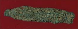 | Description / विवरण | Trench YZ 1, Layer 3, depth 20 to 28 cms It s a small piece of copper. Surface is rough and deposition of hard patina. Both ends are broken. |