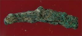 | Description / विवरण | It s a small piece of copper. Surface is rough, little curved and deposition of hard patina. Both ends are broken. |