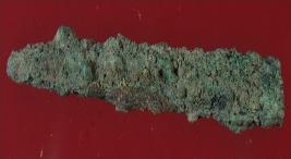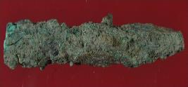 | Description / विवरण | Trench XG 2, Qdt 1, layer 4 It s a piece of copper. Surface is rough and deposition of hard patina. One end is broken and one end is pointed. |