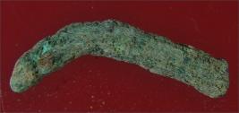 | Description / विवरण | Trench WC 1, layer 2, depth 6 cms It s a copper piece. Surface is rough and covered with deposition of hard patina. Its one end is slightly curved. |
