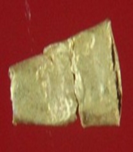 | Description / विवरण | Trench YK 4, layer 1 A, depth 150 to 320 cms It is a small foil made of gold. Shape is uneven and appearance is thin. |