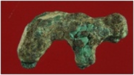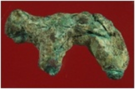 | Description / विवरण | Trench XF 4, Qdt 3, layer 4, depth 200 cm It is a animal figurine made of copper. Patina is present. Surface is rough and colour is copper green. |