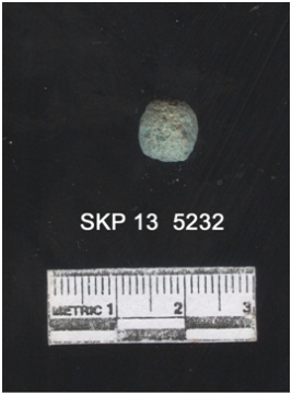 | Description / विवरण | Copper object. It is a nodule. It is corroded and green in color. |