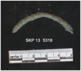 | Description / विवरण | Copper object. It is broken and corroded. It is green in color. It is a part of a bangle. |