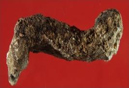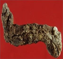 | Description / विवरण | Trench XAX 19, Qdt 1, layer 4, depth 165 cms It is an iron piece. Bent on both ends. Badly deformed and corroded. |