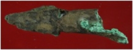 | Description / विवरण | Trench XF3, Qdt 2, Stratum dump 1 S.B layer 4, Depth 260cms Spout is made of copper. A hole is present in it. Broken and appearance is brown and becoming green due to presence of patina. |