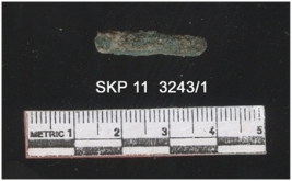| Description / विवरण | Copper fragment, it is broken, corroded and green in color. The soil deposition can be clearly seen. |