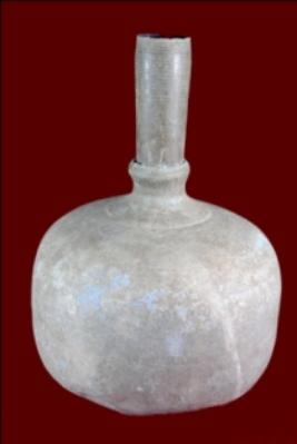 It s a wine pot made by metal. Well decorated and used for drinking purpose. Its neck is some broken. Deposition of dust and patina.