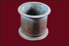 It s a pot made by metal. Well decorated and used for drinking purpose. Incised design on it. Deposition of dust and patina.