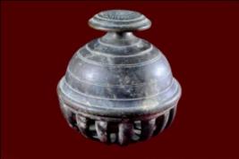 It s a bell made by metal. Well decorated and used for religious purpose. Deposition of dust and patina.