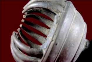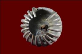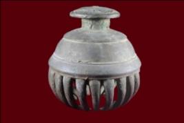 It s a bell made by metal. Well decorated and used for religious purpose. Three patal are broken. Deposition of dust and patina.