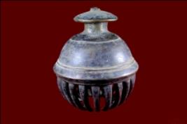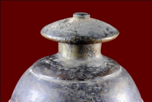 It s a bell made by metal. Well decorated and used for religious purpose. Deposition of dust and patina.