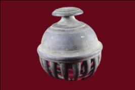 It s a bell made by metal. Well decorated and used for religious purpose. Deposition of dust and patina.