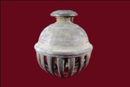 It s a bell made by metal. Well decorated and used for religious purpose. Deposition of dust and patina.