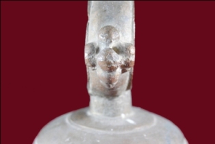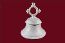 It s a bell made by metal. Well decorated and used for religious purpose. Inscription is clear visible and knob design on it. Deposition of dust and patina.