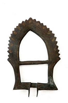 | Description / विवरण | Corbelled arch shaped. Back support of a throne. Painted with golden colour. |