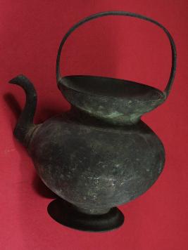 | Description / विवरण | It s a kettli made by metal. Well decorated and used for drinking purpose. Deposition of dust and patina. |