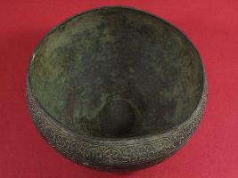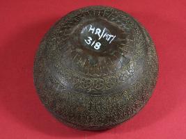 | Description / विवरण | It s a bowl made by metal. Well decorated and bottom portion is flat. Leaf design on it. Deposition of dust and patina. |