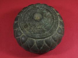 | Description / विवरण | It s a box made by metal. Well decorated and bottom portion is flat. Leaf design on it. Deposition of dust and patina. |