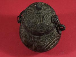 | Description / विवरण | It s a small box made by metal. Well decorated and bottom portion is flat. Deposition of dust and patina, incise lines on it. |