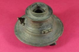 | Description / विवरण | It s an inkpot made by metal. Well decorated and used for writing purpose. Deposition of dust and patina. |