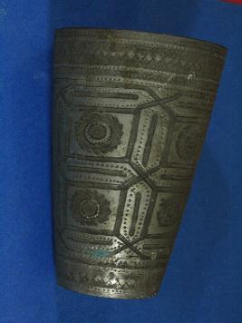 | Description / विवरण | It s a glass made by metal. Well decorated and used for drinking purpose. Deposition of dust and patina. |