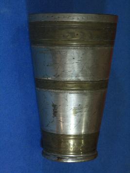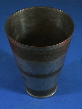 | Description / विवरण | It s a glass made by metal. Well decorated and used for drinking purpose. Deposition of dust and patina. |