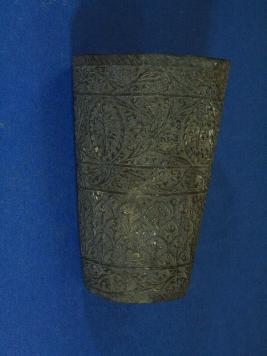 | Description / विवरण | It s a glass made by metal. Well decorated and used for drinking purpose. Deposition of dust and patina. |