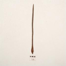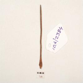 | Description / विवरण | A antimony rod made on copper, elongated body broad at one end, pointed towards other end, circular in section, coroded surface. |