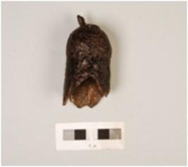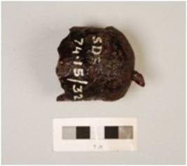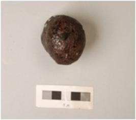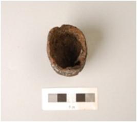 | Description / विवरण | Fragment of iron bell, broken from edges and handle, round in shape, hollow from inside, rough surface, rusted. |
