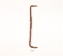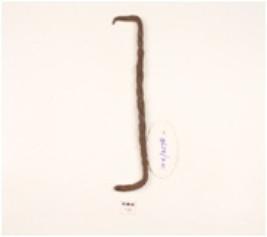 | Description / विवरण | A clamp made on iron, pointed and curved both end, chemically treated rusted surface. |