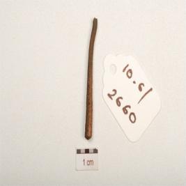| Description / विवरण | Fragment of copper antimony rod, polished surface, thick at one end, broken form other end, chemically treated and circular in section. |