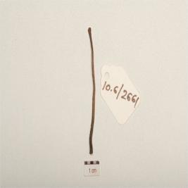 | Description / विवरण | Copper indeterminate object smooth surface, flat at one end, partly broken from other thick end, chemically treated and circular in section. |