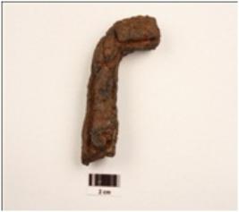 | Description / विवरण | An iron rod fragment round shape, surface is uneven, cracks are visible, round in section. |