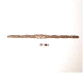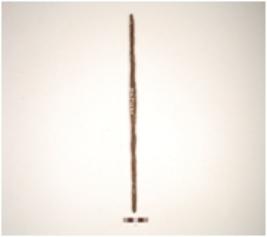 | Description / विवरण | Iron rod, slight projection at centre, corroded surface, circular cross section, round at both ends. |