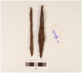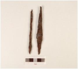 | Description / विवरण | Iron rod with corroded surface, one end pointed, other end slender, rectangular cross section. |
