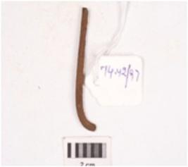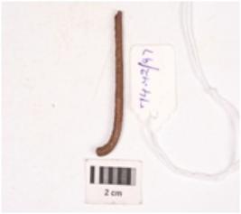 | Description / विवरण | A fragment of iron rod. One end is slight bend, rusted surface. |