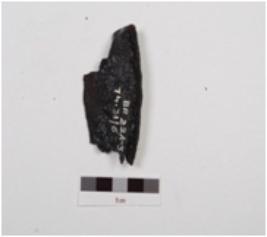 | Description / विवरण | Fragment of an indeterminate iron object flattened along one edge while the other edge is thick, it has rusted surface. |