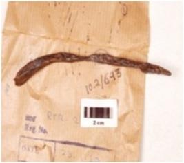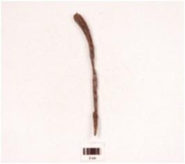 | Description / विवरण | An iron nail with elongated and pointed at one end and sharp and flat at the other end, square in section. |