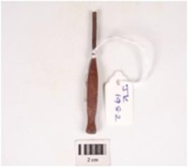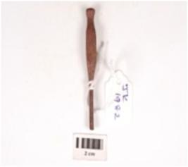 | Description / विवरण | Fragment of a pin made on iron, with a circular body, broken pointed buttom, hexagonal shaft and a conical, flat rounded top, incised leaf like design on one side of the hezagonal shaft. |