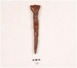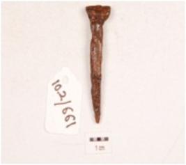 | Description / विवरण | An iron nail of squarish section with expanded triangular head, pointed at one end. |